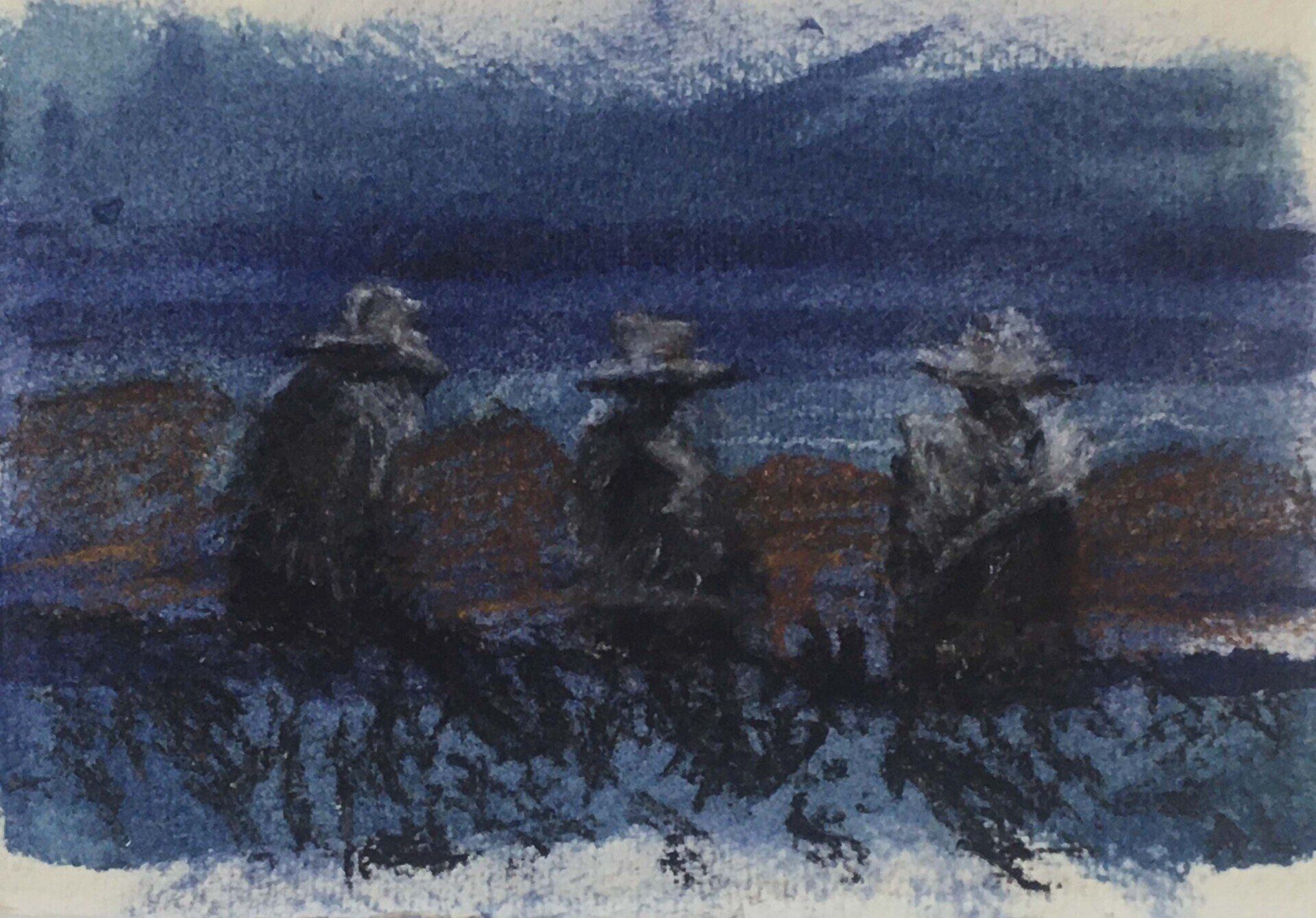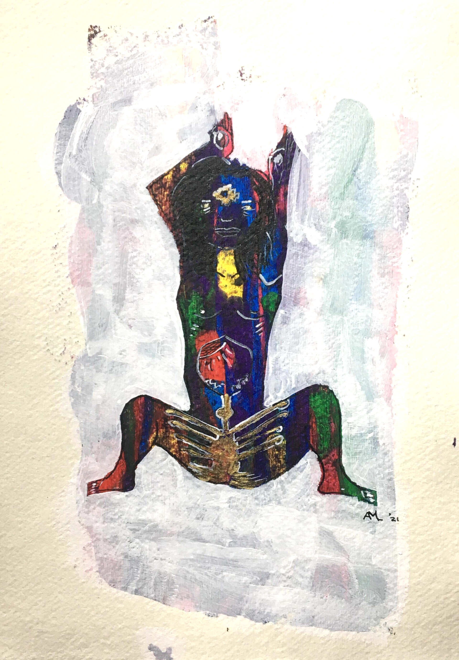 Met water vermengbare olieverf op waterbasis, pastelkrijt, pen