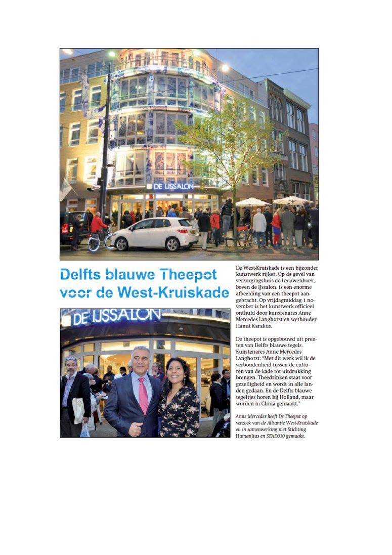 Voor inspiratie ging ik op zoek naar een ontwerp dat symbool staat voor de verbondenheid van de vele culturen op de West-Kruiskade. Zo kwam ik bij Delfts blauwe tegels. Hoewel het Delfts blauw als zeer Hollands wordt ervaren, is het van oorsprong Chinees. De Delfts blauwe theepot verenigt verschillende culturen zonder dat deze hun eigen identiteit kwijt raken.